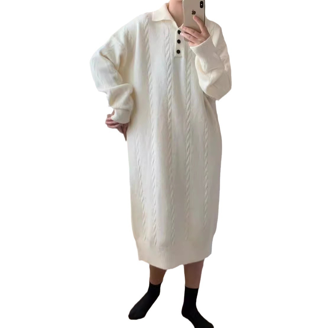 | nameOriginal | Solid Color Polo Collar Lazy Sweater Dress Women's Autumn and Winter Mid-length Thickened Twist Wool Knitted Loose dress |