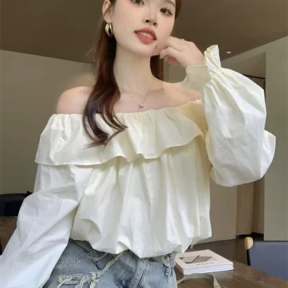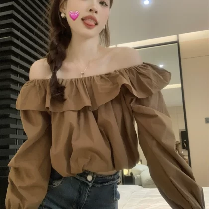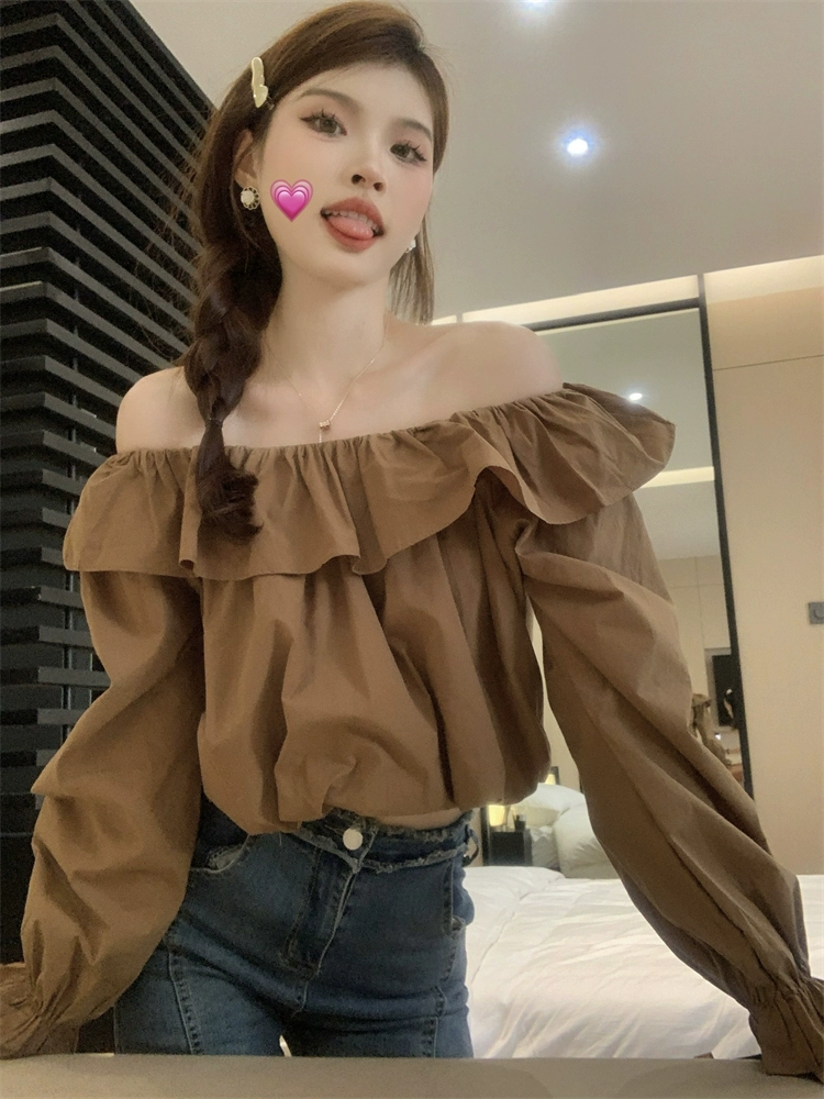 Solid color short one-neck loose long-sleeved two-piece shirt