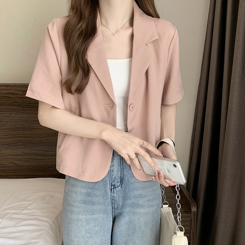 | nameOriginal | Solid Color Short Suit Jacket Women's Autumn Thin 2023 New Short Sleeve Korean Style Loose V-neck Small Suit Top |