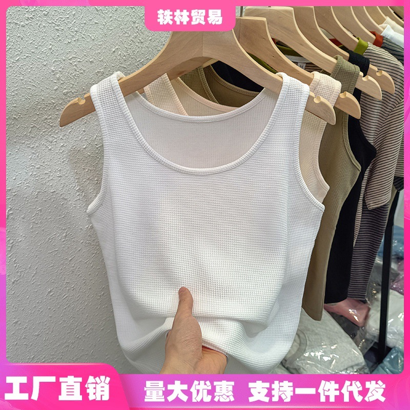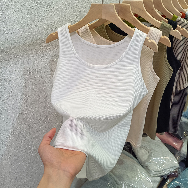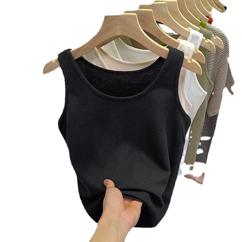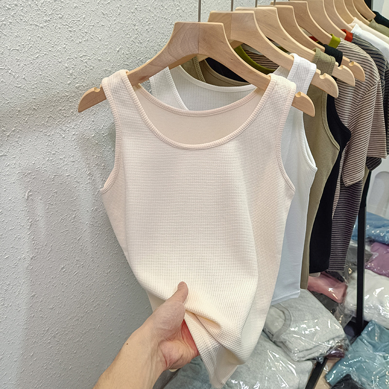 Solid Color Simple Sleeveless Shirt Women's Summer All-match Korean Style Slim-fit Slimming Waffle Waistcoat Camisole