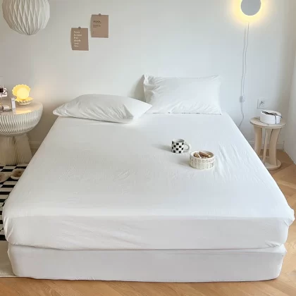| nameOriginal | Solid color washed cotton pure cotton fitted sheet single piece cotton bed cover dust cover all-inclusive bed sheet cover mattress protector cover |