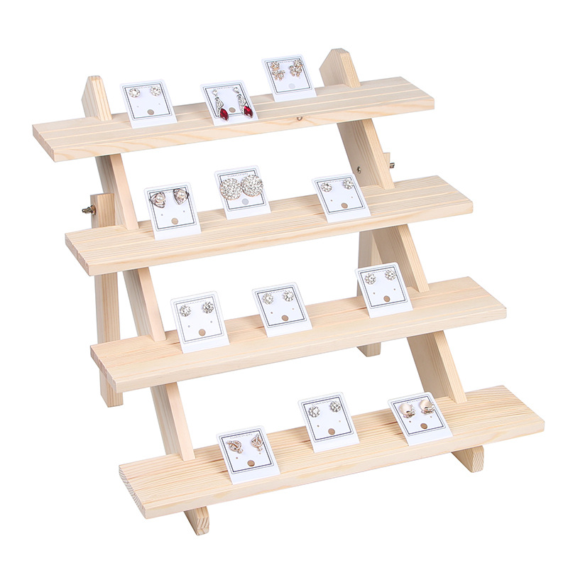 Solid Wood Trapezoidal Desktop Doll Hand-made Earrings Display Stand Earrings Card Card Jewelry Display Props Vertical
