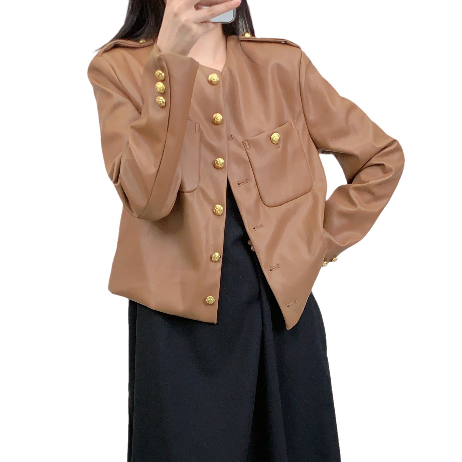 | nameOriginal | Song with autumn and winter Maillard leather women's 2024 autumn new old money wind cardigan long sleeve short coat versatile top |