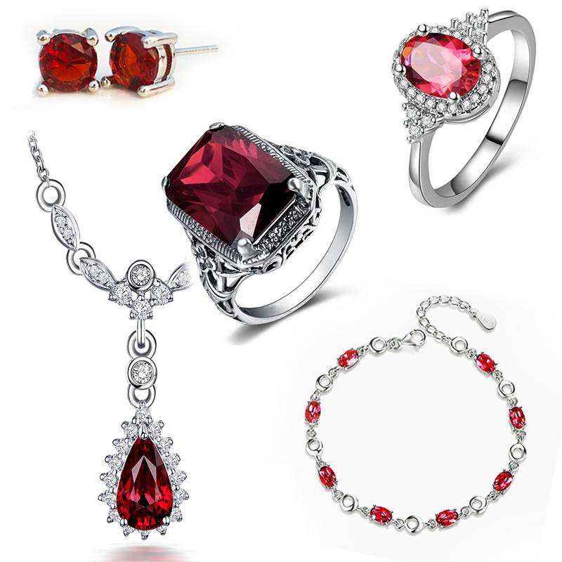 | nameOriginal | Source factory goods ruby crystal set European and American socialite wind Red tourmaline jewelry five-piece set hand ornaments accessories earrings |