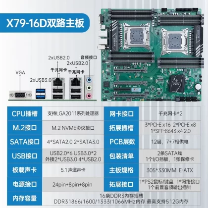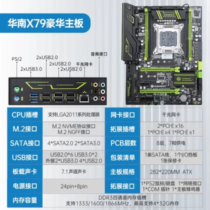 South China Gold Medal X79 2011 E5 Desktop Motherboard CPU Set Dual Channel with 2680V2 2690V2