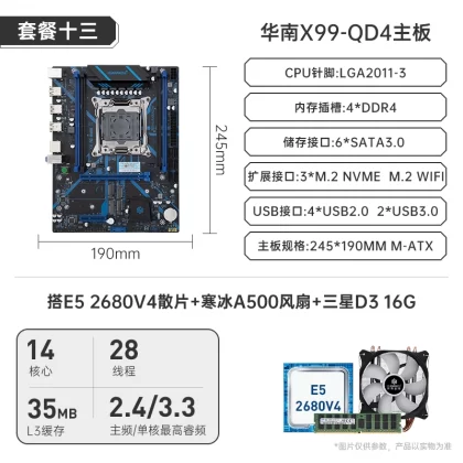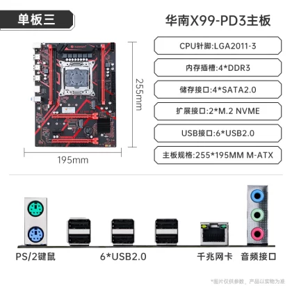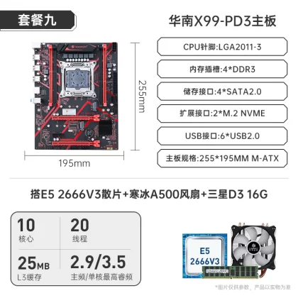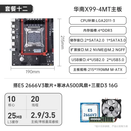 الميدالية الذهبية لجنوب الصين x99 2666v3 مجموعة اللوحة الأم لوحدة المعالجة المركزية