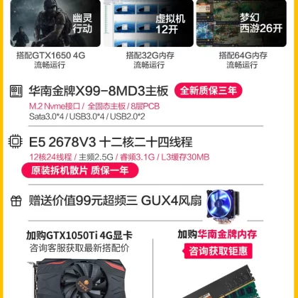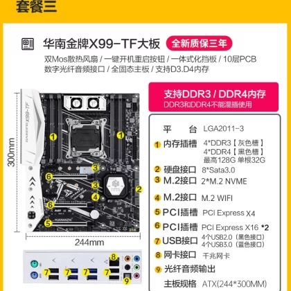 | nameOriginal | South China Gold Medal X99-TkF Computer Motherboard CPU Set DDR3/DDR4 Memory Game Design Desktop 26 |