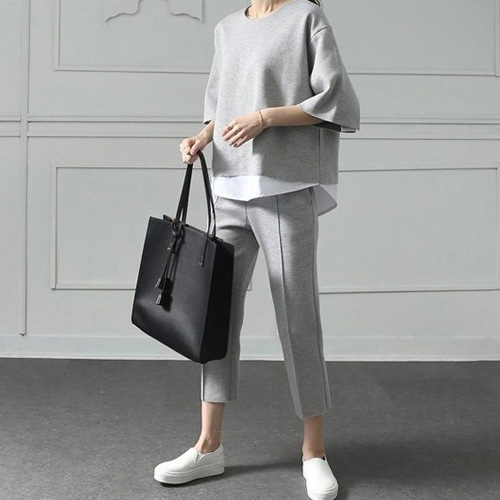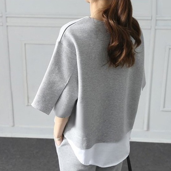 South Korea autumn new women's fake two-piece split jacket + cropped pants casual fashion suit TRN#578