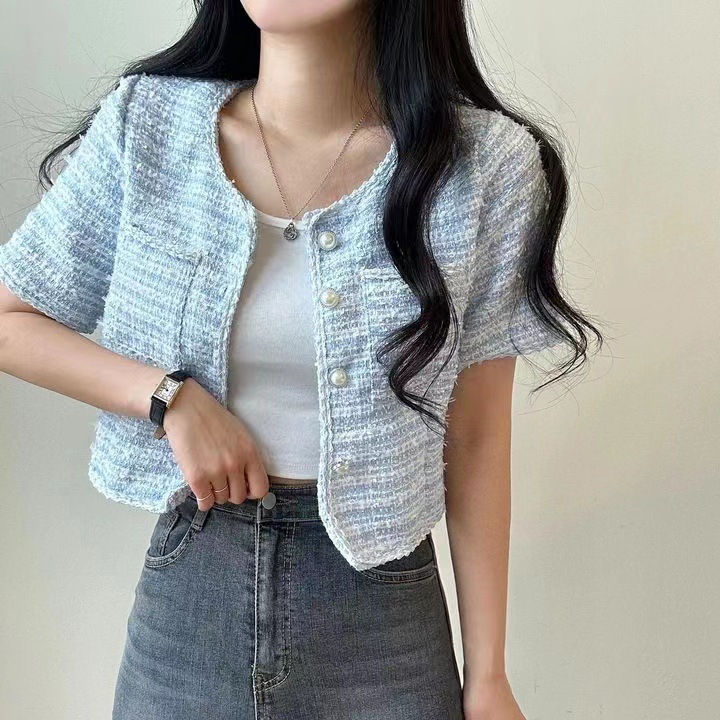 كوريا الجنوبية أنيقة الصيف الحد من العمر مزاجه كل مباراة شانيل نمط مزاجه قصيرة الأكمام سلوب قصيرة سترة سترة صغيرة للنساء