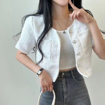 | nameOriginal | South Korea Chic Summer Age-reducing Temperament All-match Chanel-style Temperament Short-sleeved Slub Short Small Cardigan Jacket for Women |