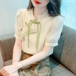 | nameOriginal | South Korea Chic Summer Chinese Style Distinctive Beaded Button Top French Gentle Slimming Puff Sleeve Small Shirt Women's Clothing |