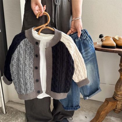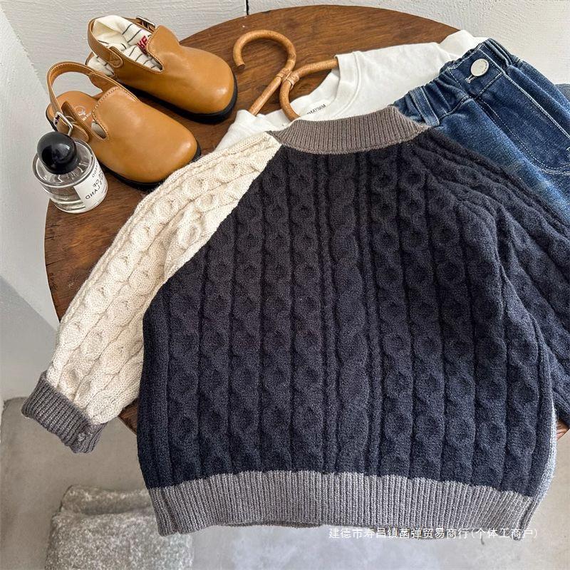 | nameOriginal | South Korea children's sweater 2023 autumn boys and girls color contrast twist knitted cardigan baby color matching coat top tide |