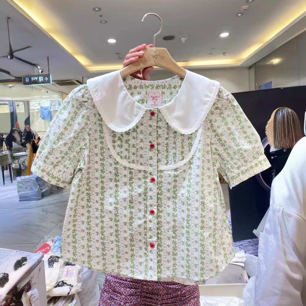 | nameOriginal | South Korea Dongda 2024 Summer New Korean Style Stitching Lapel Sweet Floral All-match Puff Sleeve Doll Shirt for Women |