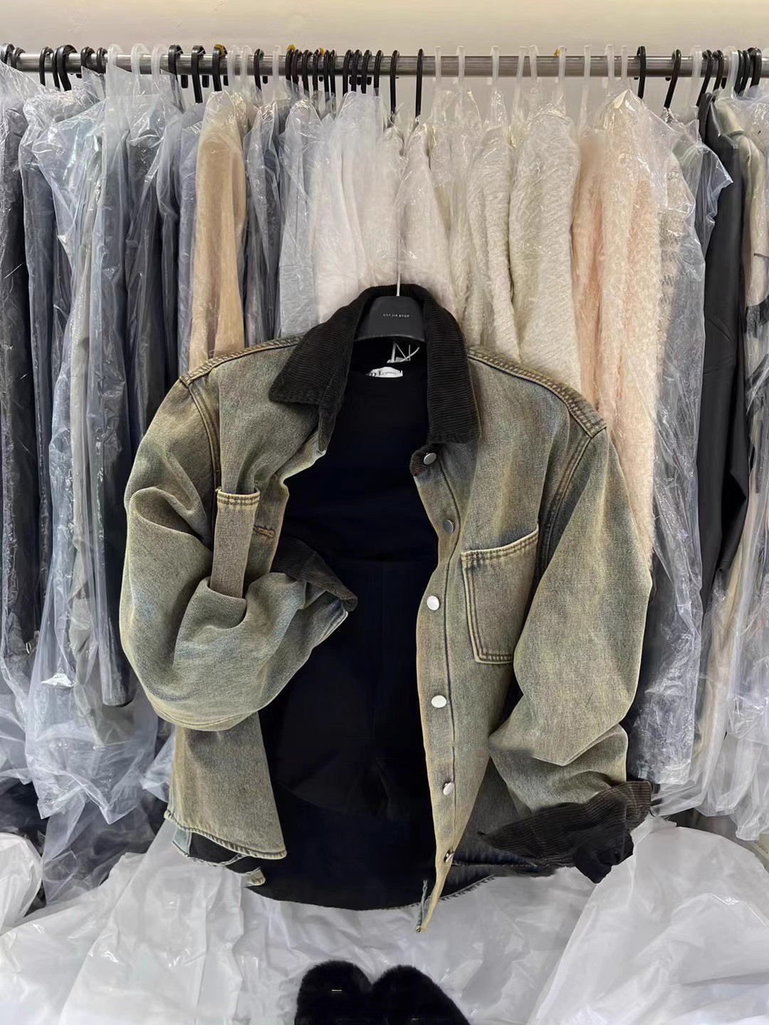 | nameOriginal | South Korea Dongdaemun 2024 Winter New loose distressed retro washed stitching lapel fleece-lined Denim coat for women |