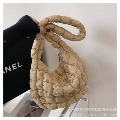South Korea Dongdaemun New Cloud Bag Portable Down Large Capacity Fashionable Mini All-match Dumplings Pleated Underarm Bag