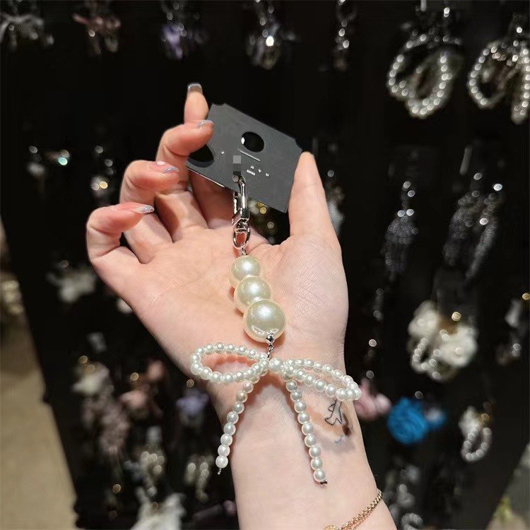 South Korea Dongdaemun Pearl Bow Pendant Simple Fashion Bag Bag Hanging Chain Personality Temperament Key Chain Hanging Ornaments
