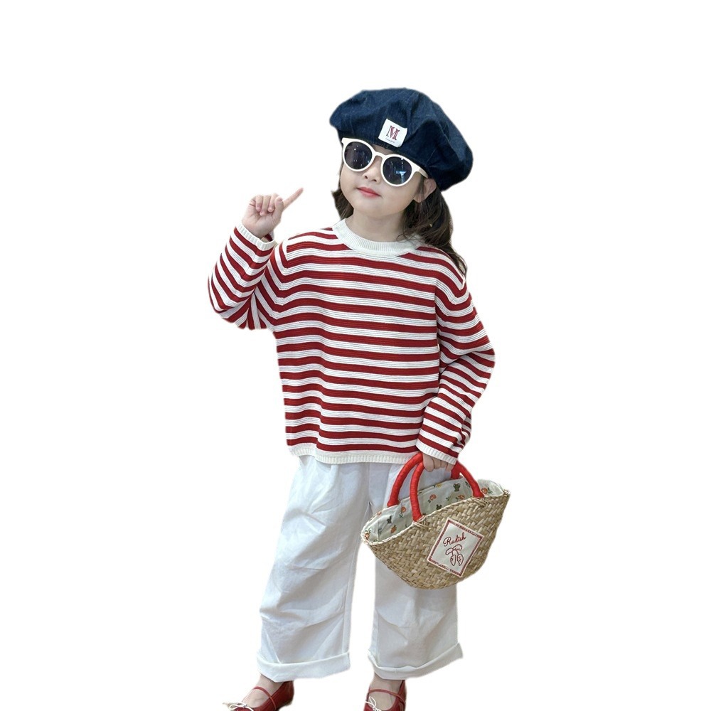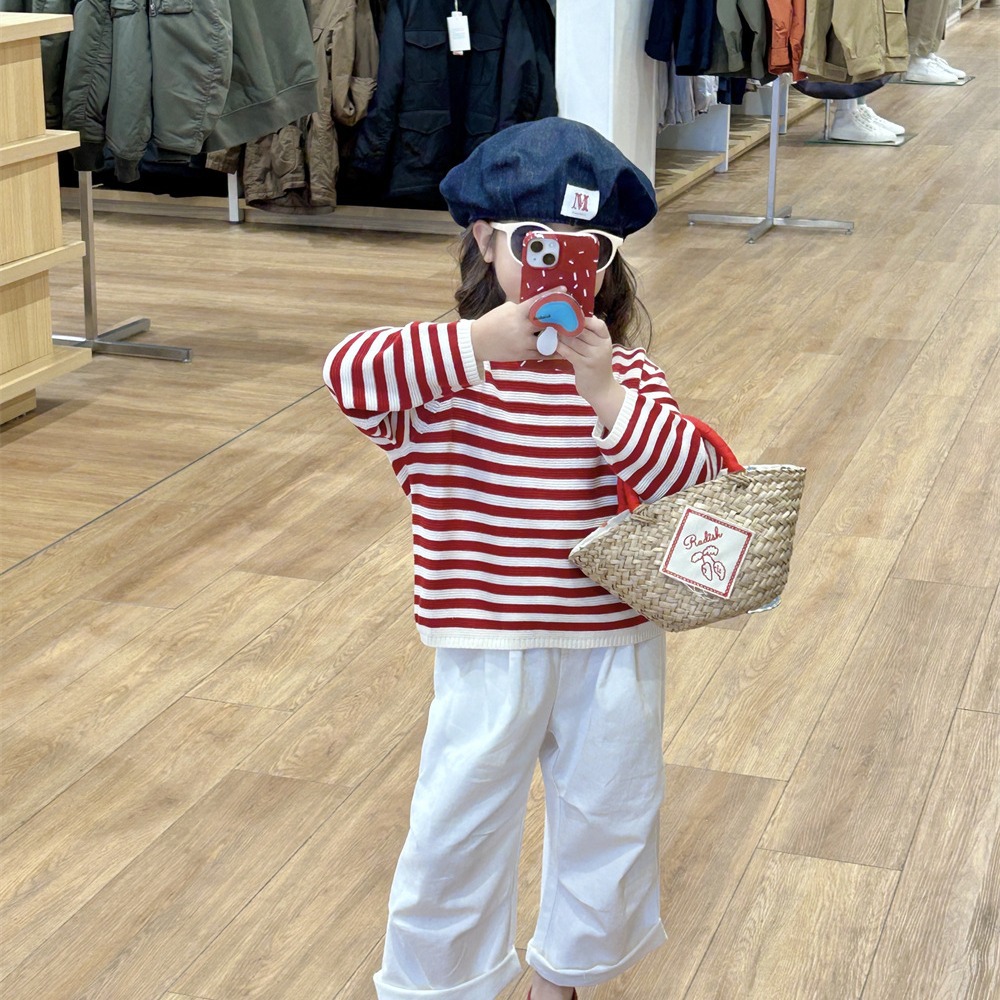 | nameOriginal | South Korea girls' striped sweater T-shirt 2024 spring new children's round neck top children's pullover fashion |