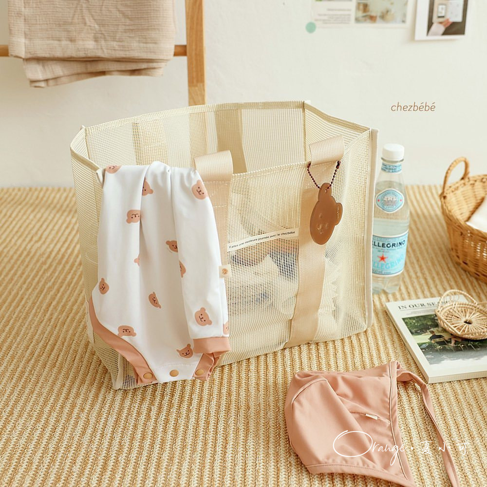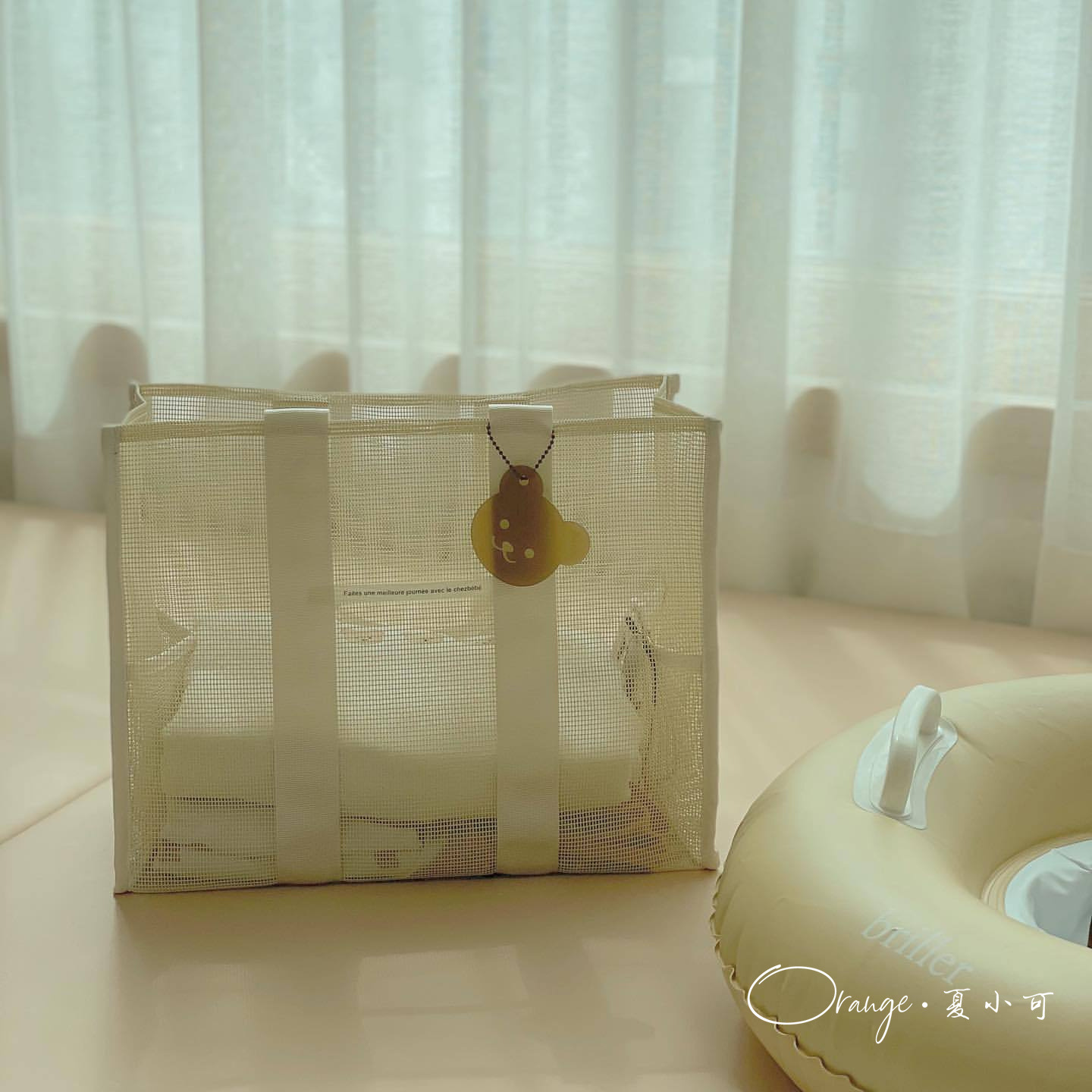| nameOriginal | South Korea ins shoulder mesh beach bag mesh handbag swimming fitness storage khaki bear mother and baby bag |