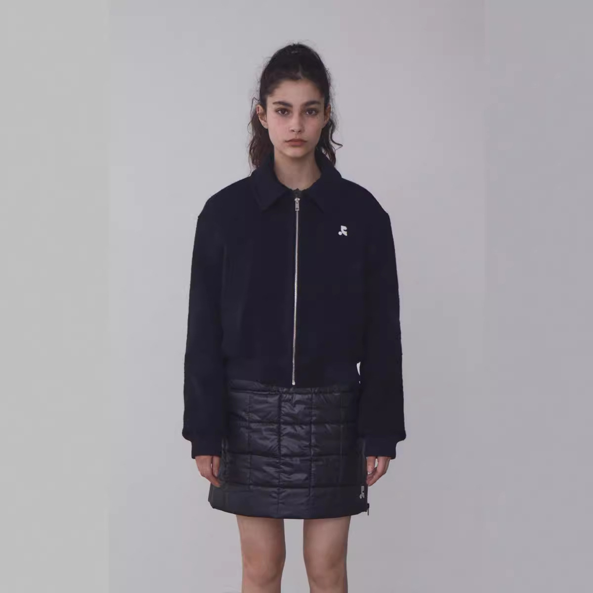 ~~~~~ معطف سترة قصيرة من الصوف مطبوع عليه شعار طية صدر السترة المتخصصة في كوريا الجنوبية للنساء