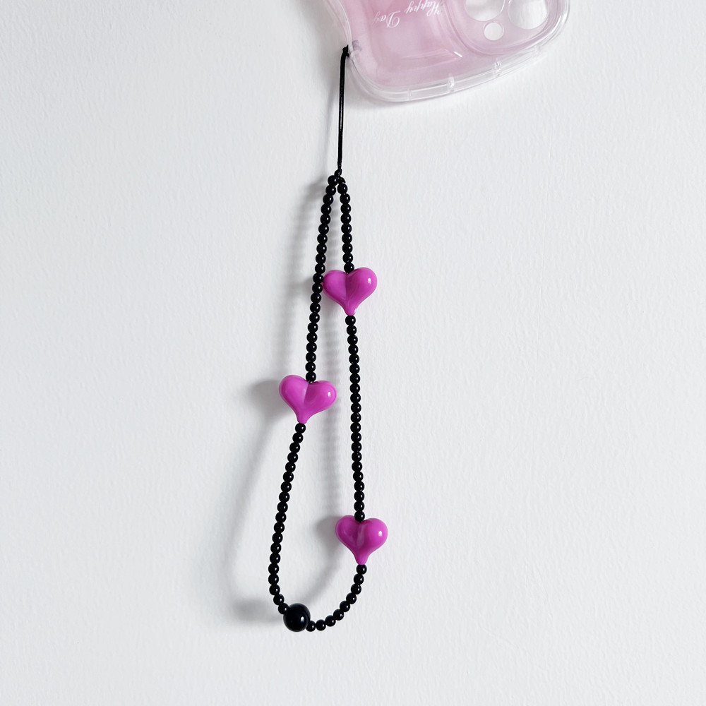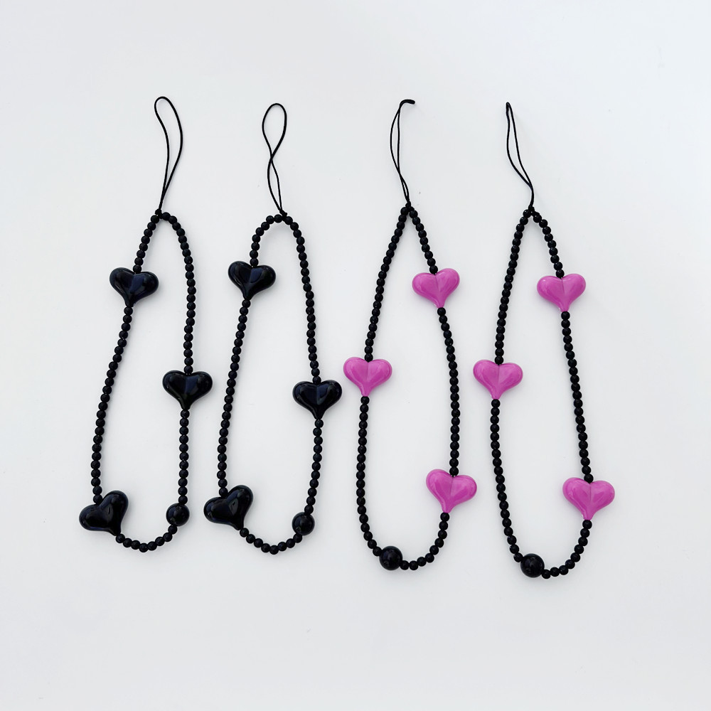 South Korea rose Park Caiying same style mobile phone chain pendant black love beaded short wrist chain wind pendant mobile phone rope