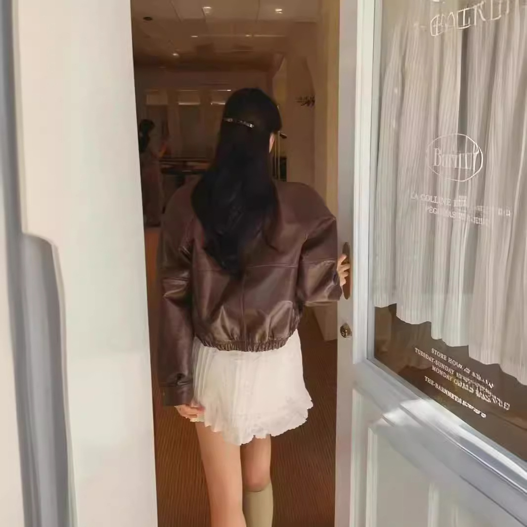 | nameOriginal | South Korea th * Bar * net eight milk retro stand collar short cowhide zipper leather jacket coat |