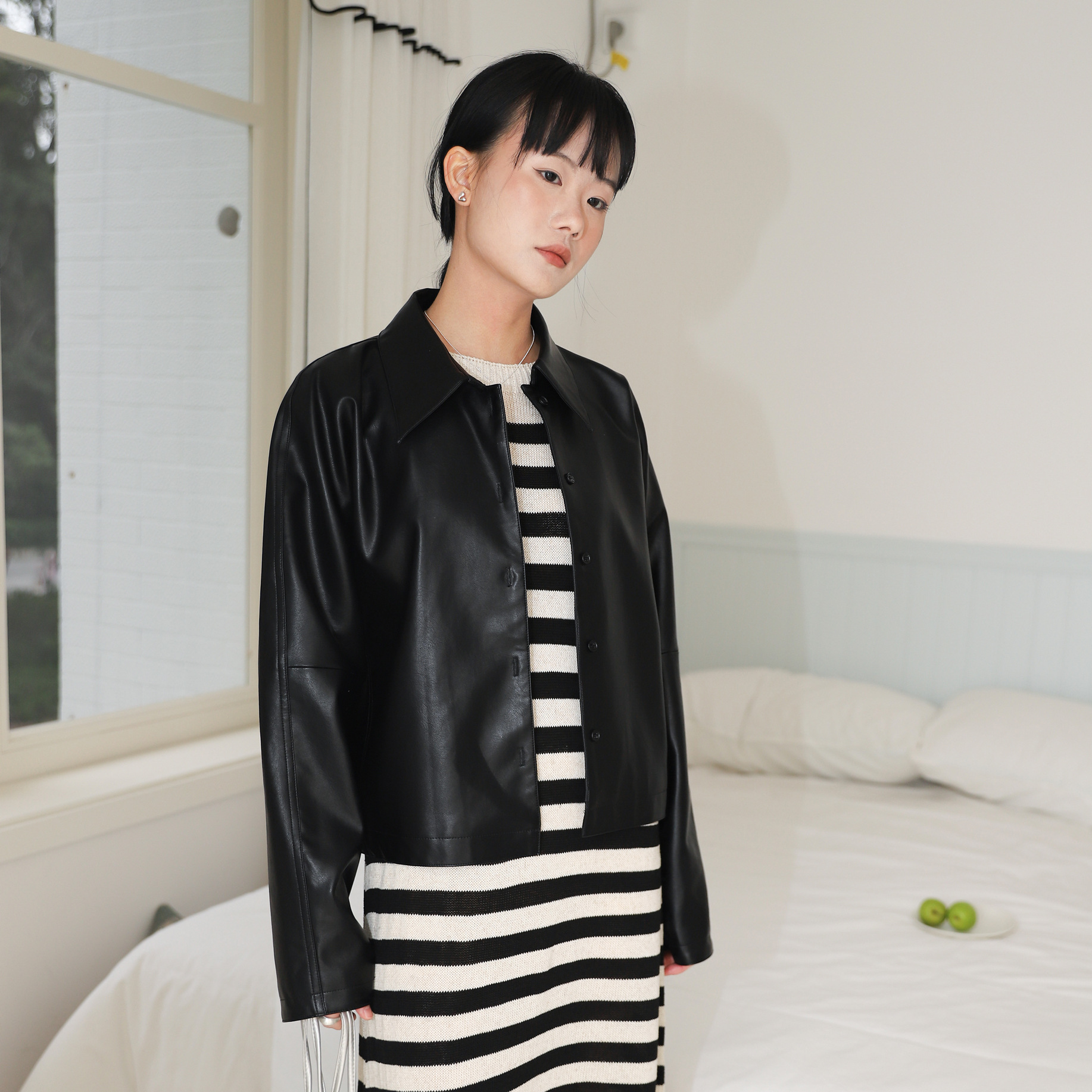 عرض خاص غير قابل للاسترداد سترة جلدية فضفاضة جديدة على طراز هونج كونج للدراجة النارية معطف وطية صدر السترة بسيط وسيم 6376