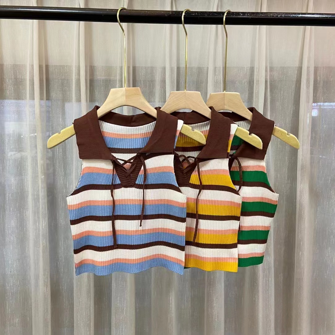 | nameOriginal | Spice Girls American Style Vintage Polo Collar Striped Knitted Camisole Women's Summer Fashionable Stylish Top |