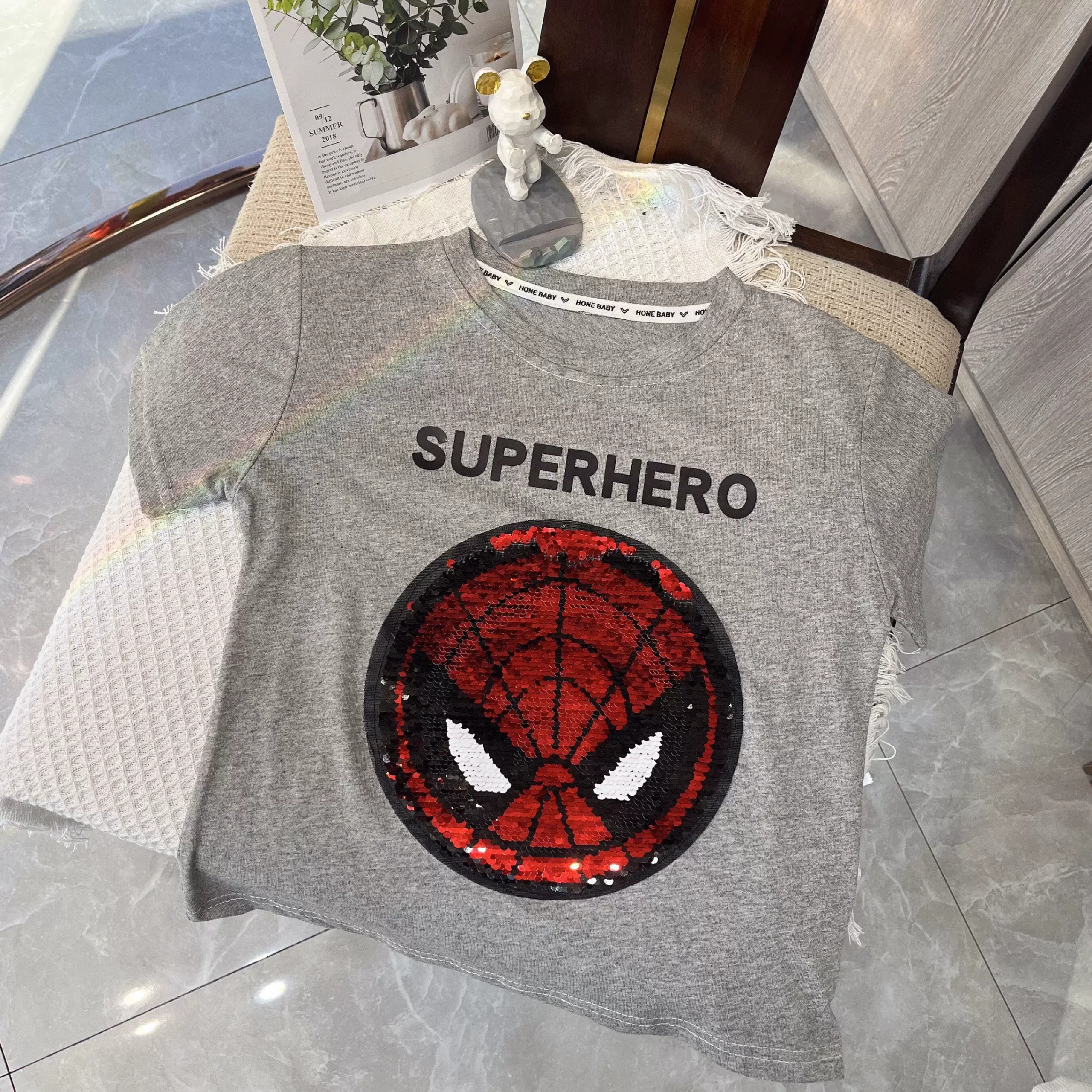 | nameOriginal | Spider-Man color-changing short-sleeved T-shirt men's Baonan new summer children's creative sequined Iron Man face-changing top T |