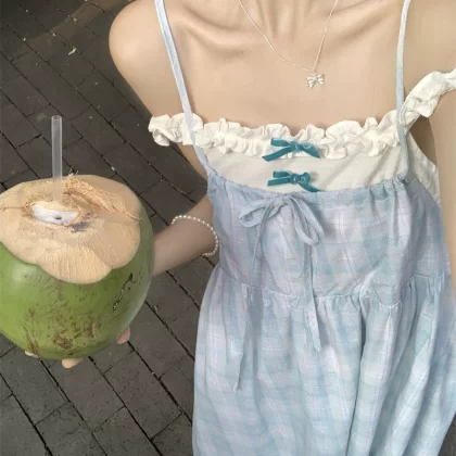 | nameOriginal | Spliced plaid suspender spring fairy skirt fake two pieces |