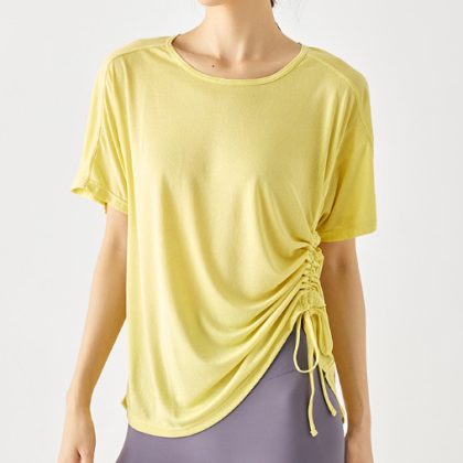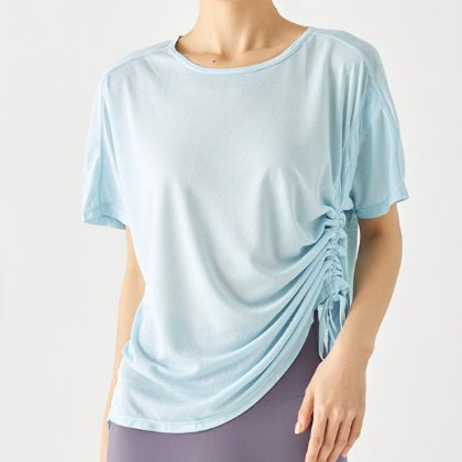 | nameOriginal | Sports Comfortable Round Neck Drawstring Loose Breathable Thin Short T-Shirt Yoga Top Blouse for Summer |