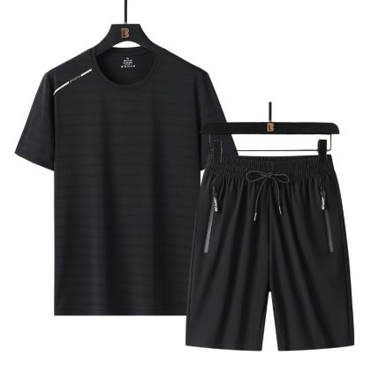 | nameOriginal | Sports Suit Men's Ice Silk Short Sleeve Shorts 2023 New Summer Dad Running Casual Quick-drying Clothes Two Pieces |