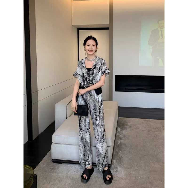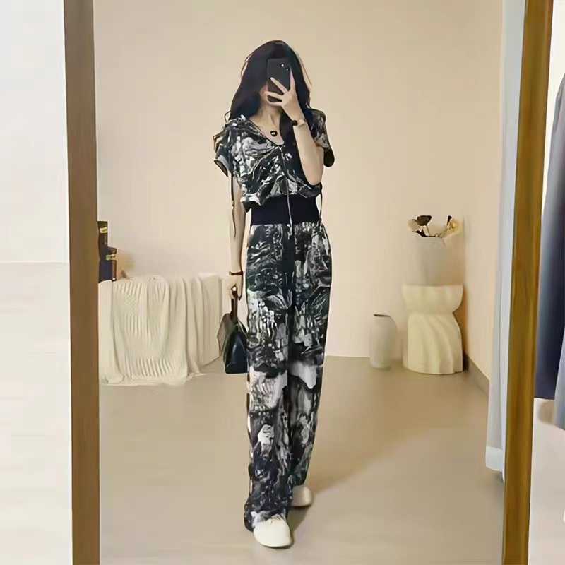 | nameOriginal | Sports Suit Women's Summer 2024 New Hong Kong Flavor Light Cooked Wind Sizzy Hanging Hat Cardigan High Waist Wide Leg Pants Two-piece Set |