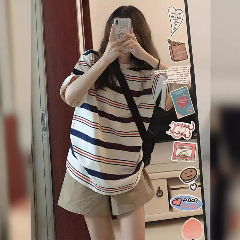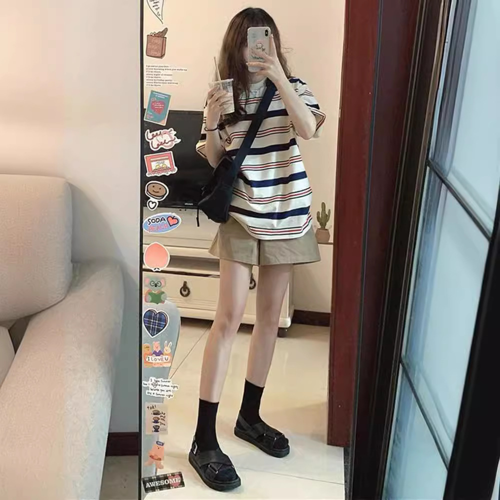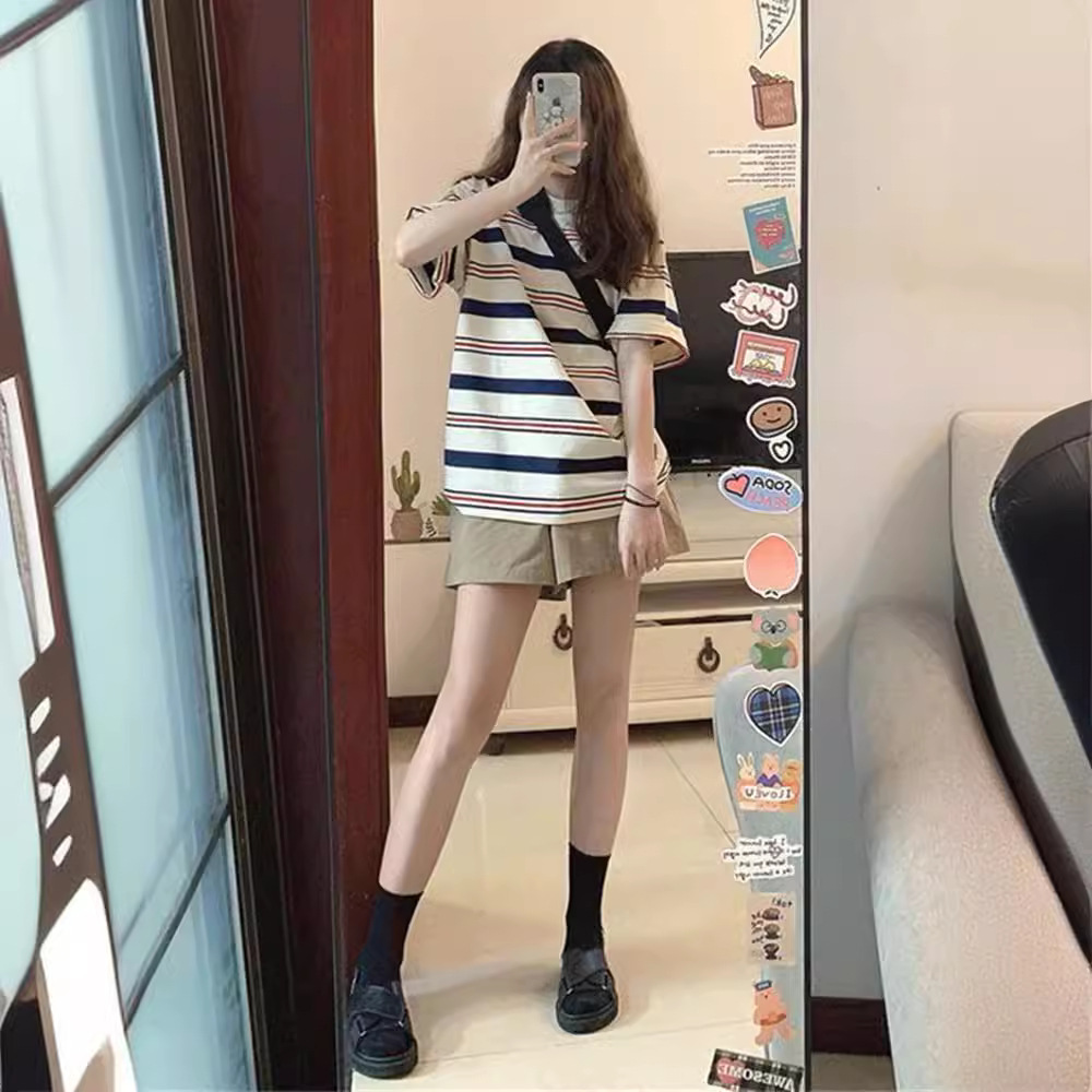 بدلة رياضية نسائية صيفية عصرية للطلاب على الطراز الكوري سراويل قصيرة عصرية فضفاضة بأكمام قصيرة طقم مكون من قطعتين غير رسمي