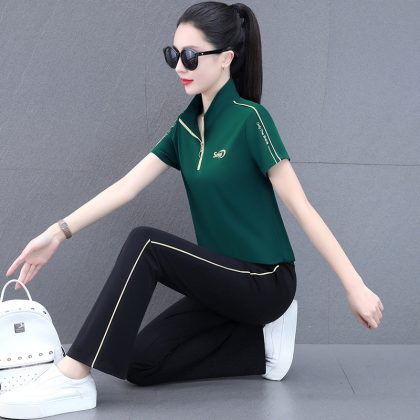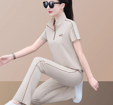| nameOriginal | Sportswear Set Women's Summer Middle-aged Women's Stylish Fashion Ice Silk Short-sleeved Wide-leg Pants Casual Dancing Two-piece Set |