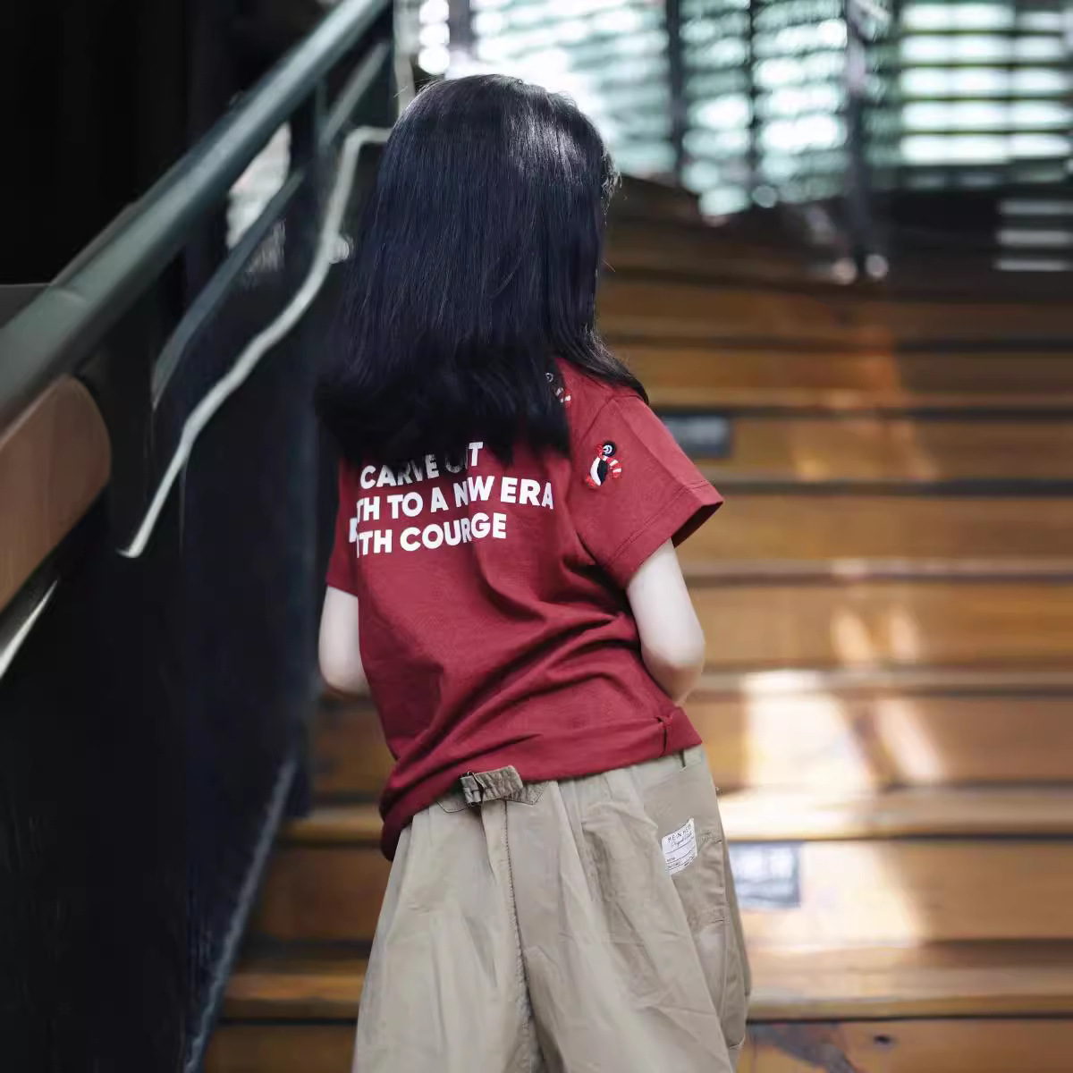 Spot 2021 Spring and Summer Japanese Tooling Style Girls' Half-length Lantern Skirt Parent-Child + Red Penguin Short Sleeve