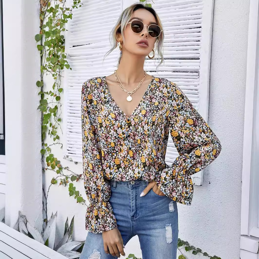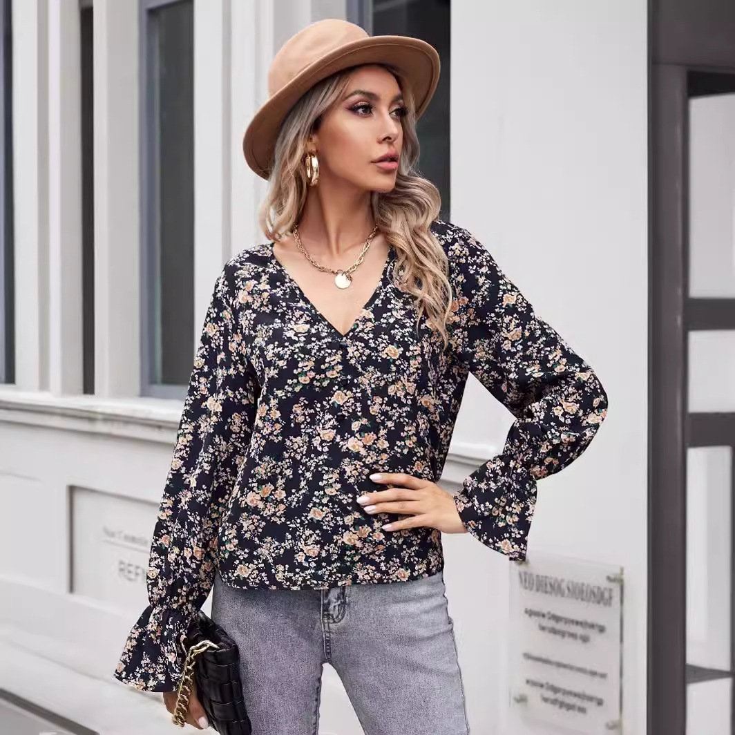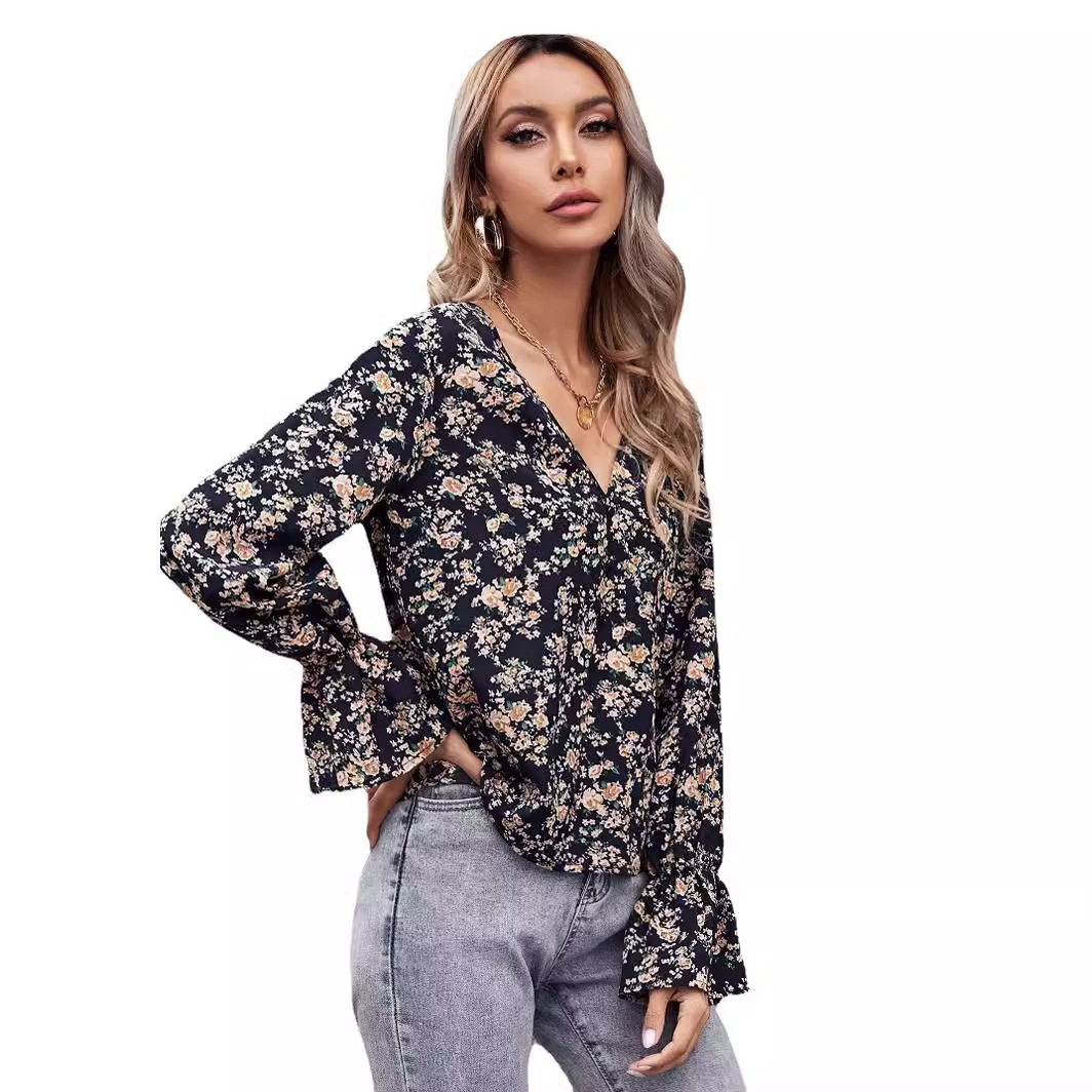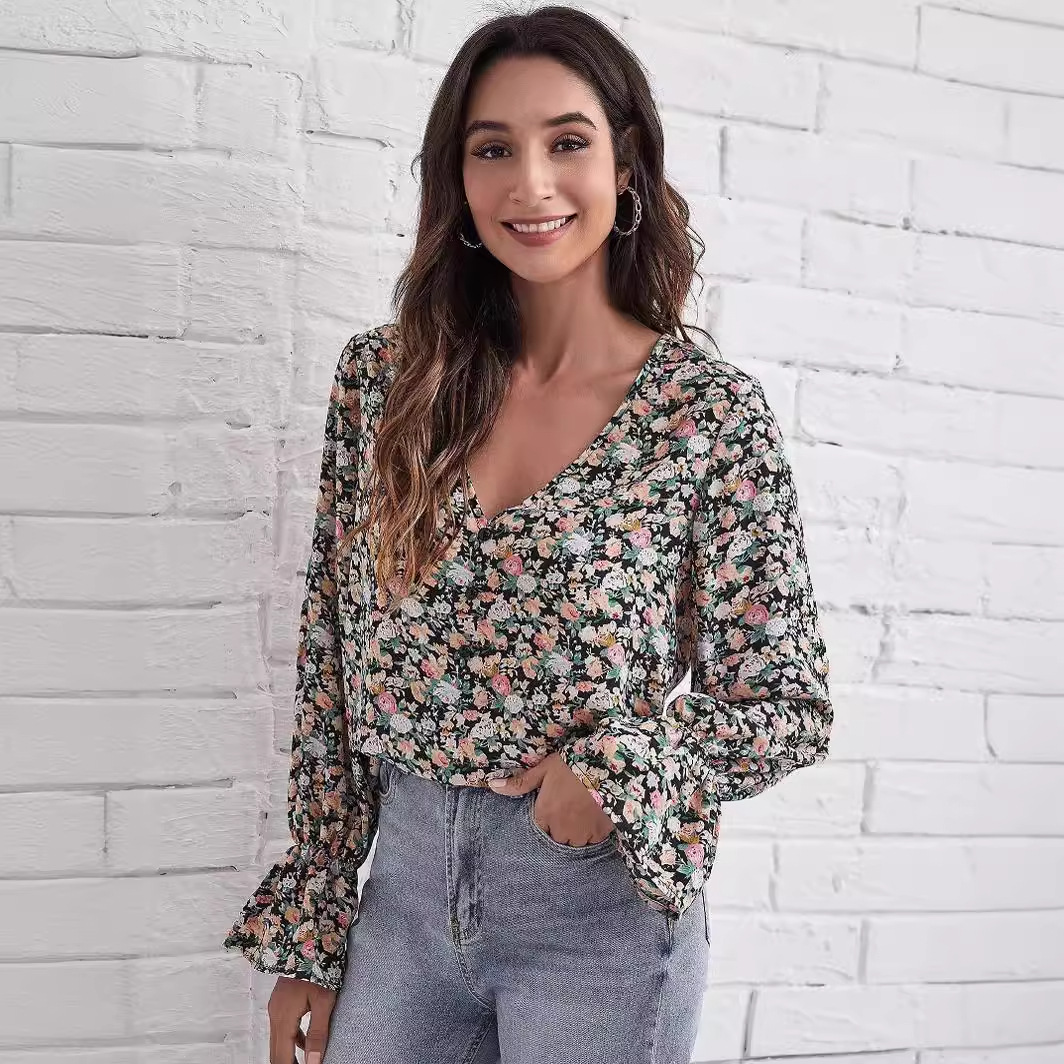 | nameOriginal | Spot 2022 Spring and Summer Cross-border Amazon V-neck Pullover Long Sleeve Chiffon Floral Top Commuter Loose Blouse |
