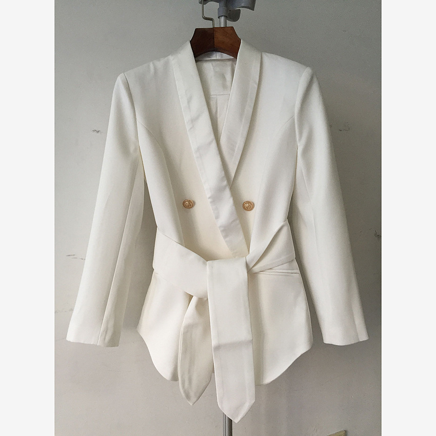 | nameOriginal | Spot 2024 European and American foreign trade star new metal double-breasted shackles collar belt suit jacket |