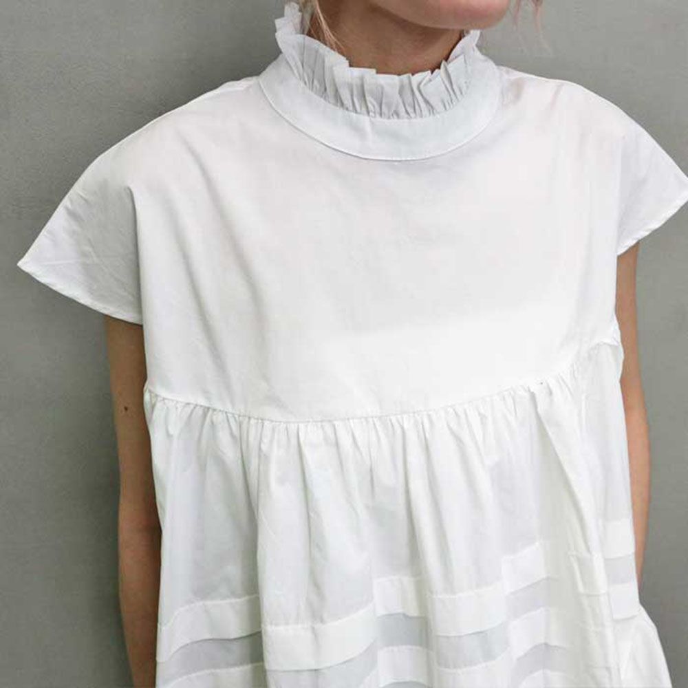 Spot cross-border 2022 Japan and South Korea short sleeve foreign trade solid color semi-high collar temperament commuter back lace shirt