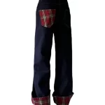 | nameOriginal | Spot goods! American retro plaid jeans for women, new summer design, niche straight high-waisted trousers |