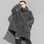 بقعة غير النظامية البلوز الدنيم سترة المرأة فضفاضة كبيرة الحجم العمودي طوق كم طويل منتصف طول رمادي غامق العصرية سترة