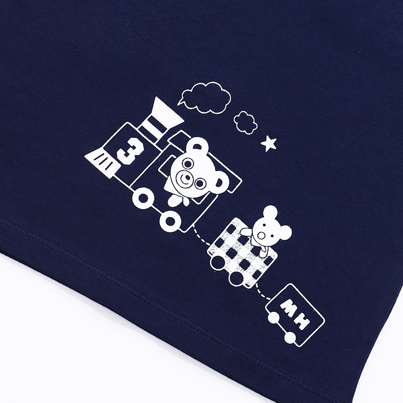 سبوت ميكي ملابس أطفال صيفية للأولاد والبنات سترة مطرزة بقطار الدب الكرتوني تي شيرت علوي برقبة مستديرة وشعر جيل