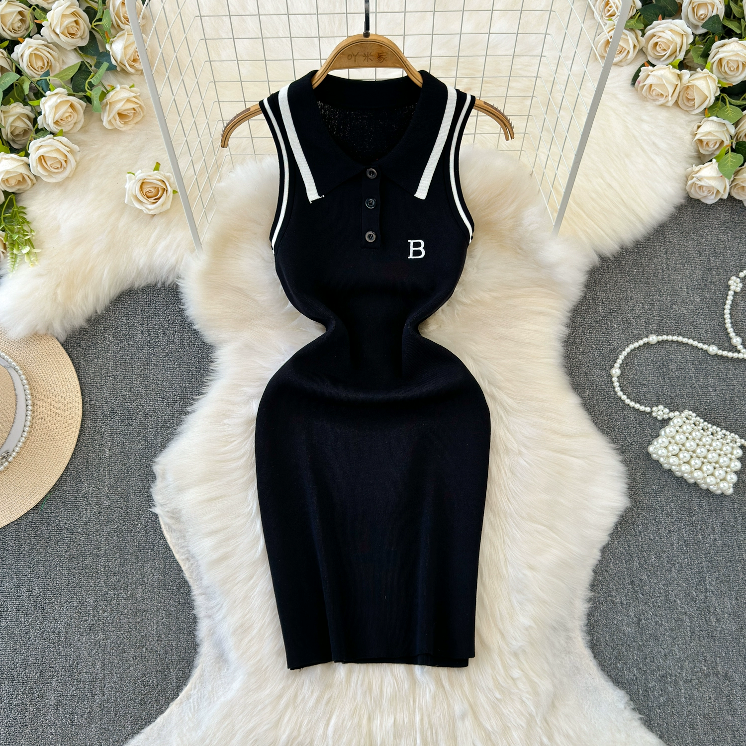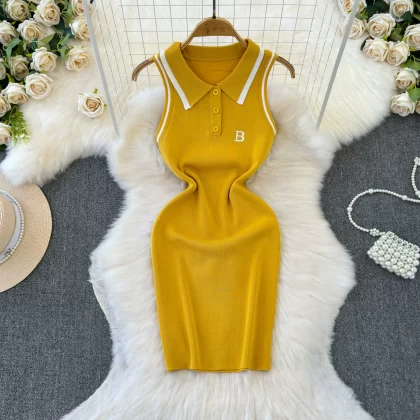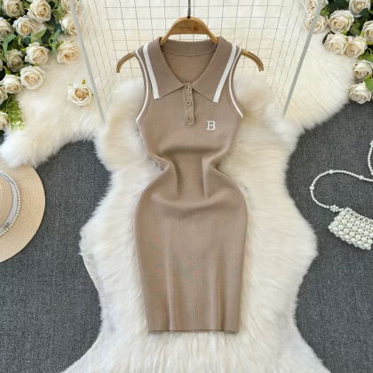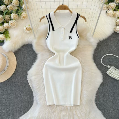 | nameOriginal | Spot pure lust hot girl casual sports Polo collar white halter dress slim slim vest hip skirt |