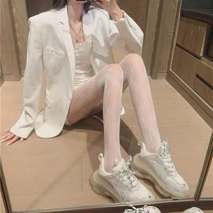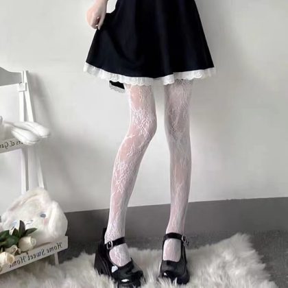 | nameOriginal | Spot spring and summer lace stockings JK black stockings women's white small G moon flower bow pantyhose fishnet stockings |