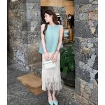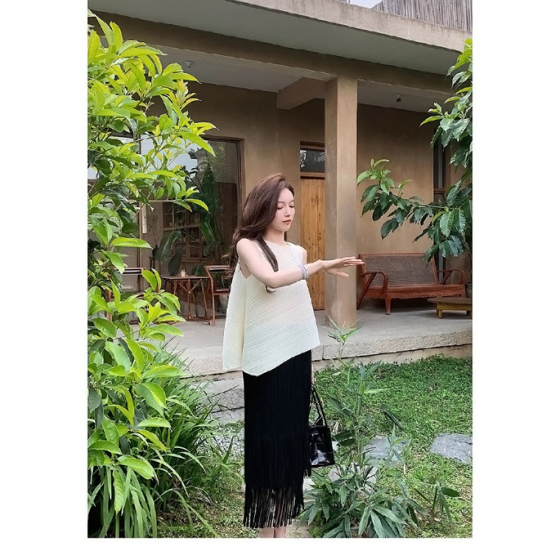 | nameOriginal | Spot thousands of favorites set dye white elegant lazy three house sleeveless top pleated tassel skirt women |