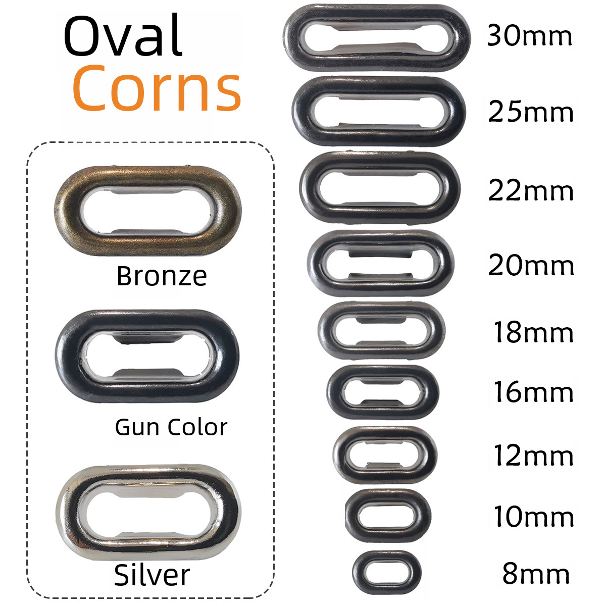 | nameOriginal | Spot wholesale gas eye buckle copper material does not rust Oval corns all copper hollow rivet rectangular buttonhole |