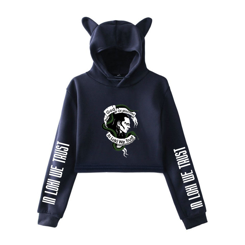 Spot wholesale Nordic myth LOKI LOKI evil God sweet cute exposed navel cat ear sweater women