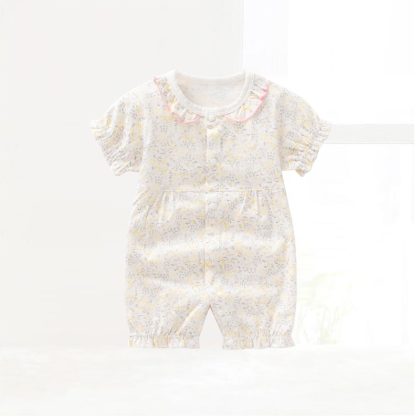 [Spot wholesale] Summer new cotton short sleeve split jumpsuit sweet out of the female treasure climbing clothes