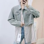 | nameOriginal | Spring 2024 Brand Counter New Fashion Korean Spliced Striped Shirt Fake Two-piece Denim Jacket 6610 |