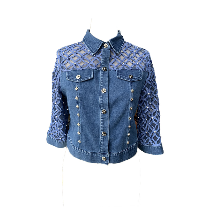 | nameOriginal | Spring 2024 light luxury South oil European socialite high-grade heavy industry rivet Diamond-embedded hollow slim fit Denim short coat for women |