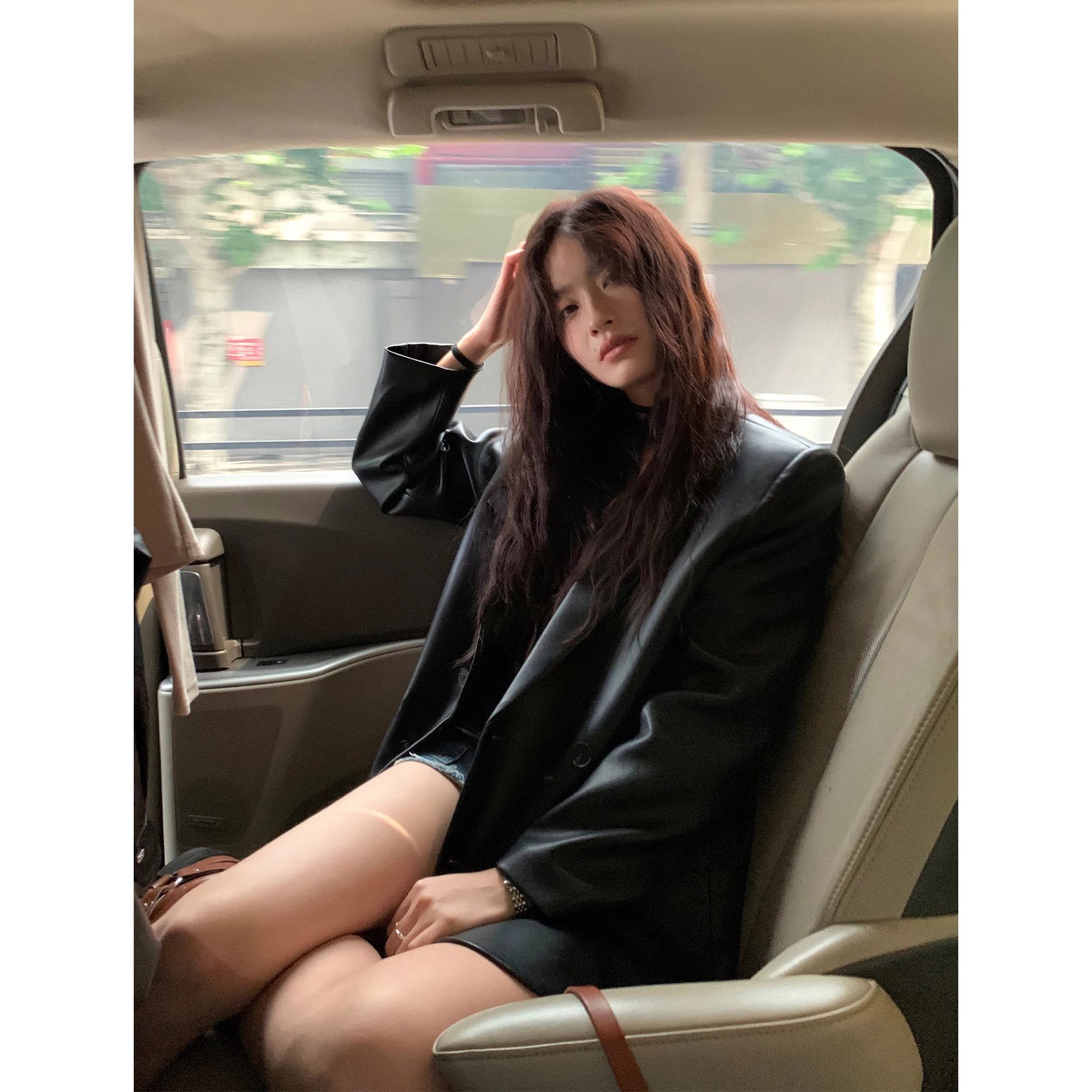 | nameOriginal | Spring 2024 New Black Retro PU Leather Suit Jacket Women's Loose Casual Elegant High-end Top for Women |
